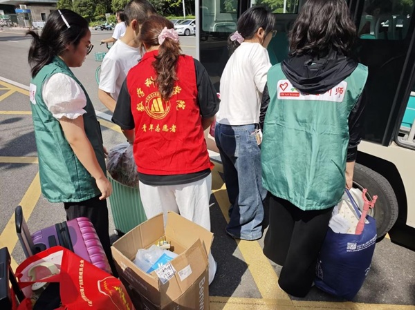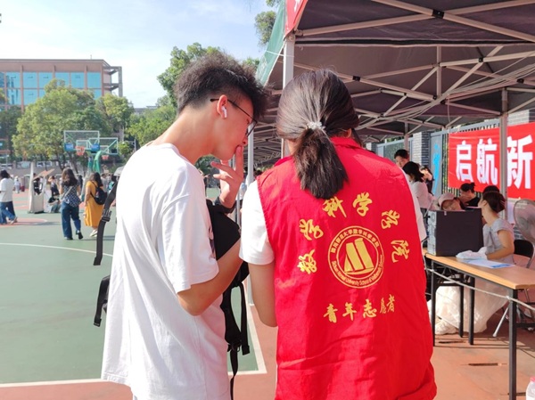 9月8日下午,流动志愿者已在篮球场迎新摊位就位,为提前到校的新生提供“一站式”服务——协助核对报到资料、指引后续流程,让新生刚进校园就感受到贴心关怀。9月9日清晨8点起,东门、西门、南门、北门、小北门五个大门的接站点同步启动,114名志愿者按2小时一班的频次轮换值守,确保服务“不打烊”。驻守摊位的志愿者熟练协助新生完成线下报到手续,流动志愿者则在校园内穿梭引导,主动帮新生拎行李、指方向,从“报到流程怎么走”到“宿舍钥匙在哪领”,志愿者们用专业解答和暖心行动,让新生报到之路畅通无阻。