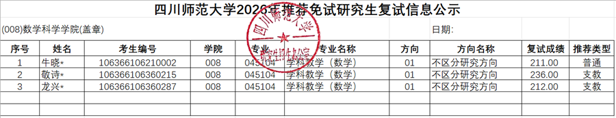按照《关于做好2026年接收推免研究生相关工作的通知》要求,华体会(中国)于2025年9月29日14:00-14:20对3位申请人按要求提供的材料审核均符合推免研究生条件,2025年9月29日下午14:30-17:30为符合推免研究生资格的3位学生安排笔试考试和综合面试(其中包括外国语听说能力测试和专业面试)。现将考核结果公示如下: