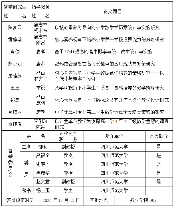 华体会(中国)2025年秋季研究生学位论文答辩公告(第三期)