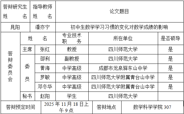 华体会(中国)2025年秋季研究生学位论文答辩公告(第四期)